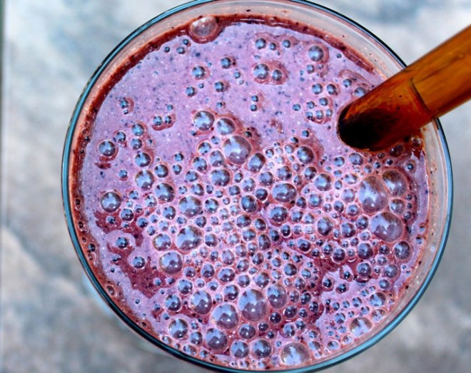 Each night, take one jar out of your freezer and place it in the fridge. In the morning, dump contents of jar into your blender and add 2 cups of water or dairy-free milk. Blend until smooth.