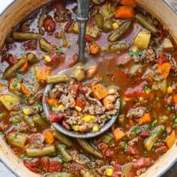 Experience the wild west in a bowl with this Cowboy Hamburger Soup recipe! This comforting blend features seasoned ground beef, veggies, and a touch of Tex-Mex, simmered to perfection in a hearty beef broth.