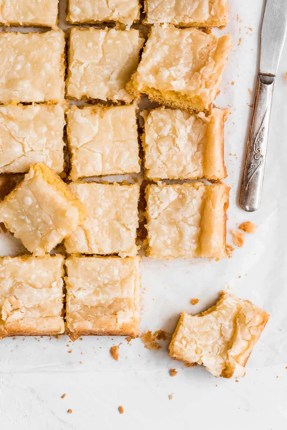 Congo bars are soft and chewy, filled with chocolate chips and walnuts. They’re like a gooey chocolate chip cookie in bar form!