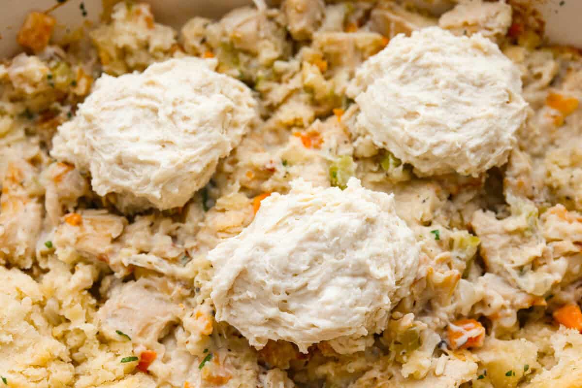 Make-Ahead Friendly: Assemble the chicken and vegetable layer in advance, then finish with the dumplings when you’re ready to bake.