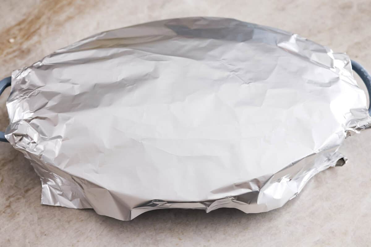 Loosely cover the dish with foil, making sure it doesn't touch the dumplings, and bake for 30 minutes. Uncover the dish and bake for another 10-15 minutes until the dumplings are lightly browned on top.