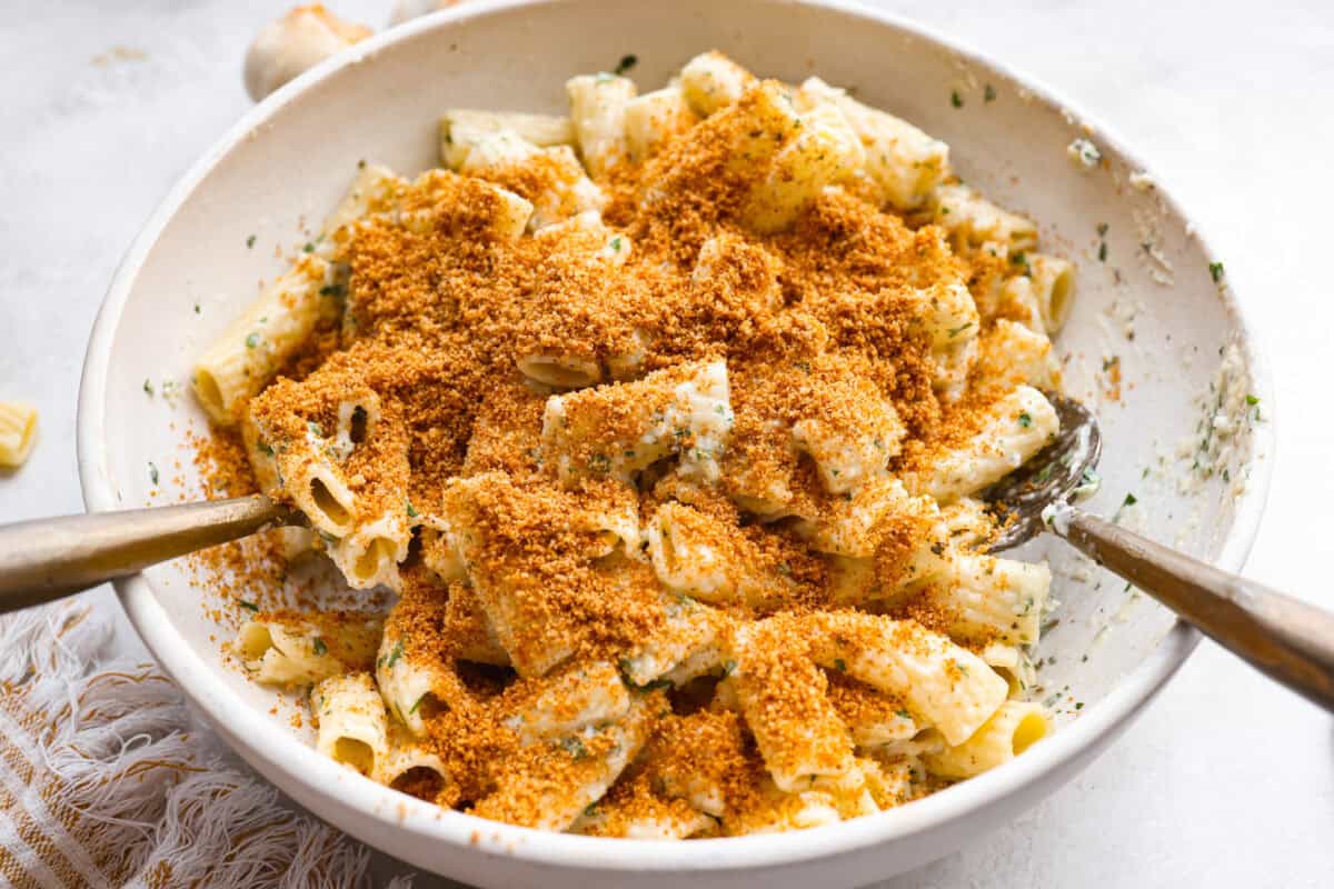Creamy, garlicky, and topped with toasted breadcrumbs. This pasta tastes just like your favorite garlic bread, but in bowl form.