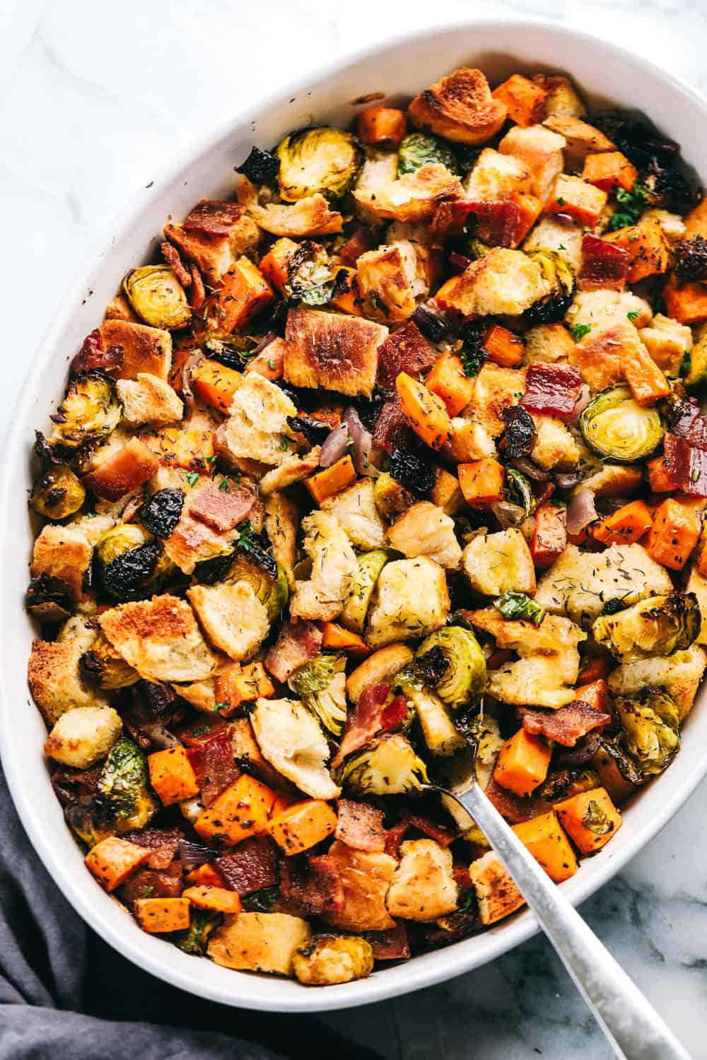 These cute little sausage balls are such a fun way to eat stuffing during the holidays. I have been asked to bring them every time we get together. Make them with all the other classic sides like mashed potatoes, sweet potatoes, and rolls!