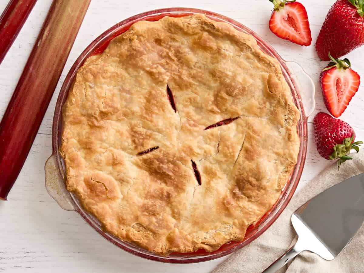 Sweet strawberries and tart rhubarb come together in a flaky crust for a classic spring and summer dessert that tastes like home. I love how this recipe for strawberry rhubarb pie uses budget-friendly frozen strawberries and simple pantry staples…SO easy!