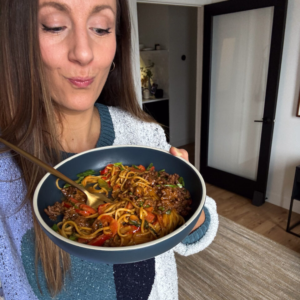 This sounds weird but I’ve brought this home as leftovers a few times and we’ll reheat it in the OVEN?! It caramelizes even a bit further and the edges of the noodles get a bit crispy and it’s so good.