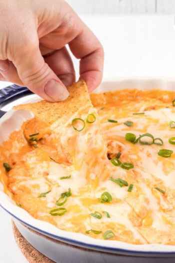 This Cottage Cheese Buffalo Chicken Dip is everyone’s favorite snack for game day and parties! Made with creamy blended cottage cheese, buffalo sauce, and shredded chicken, this dip will be the first to disappear at the tailgate!