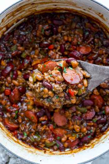 If you’re bringing a dish to the next family reunion, make it these loaded baked beans. Three kinds of meat, two kinds of beans, and a sauce that is smoky, sweet, and full of depth. They disappear every single time.