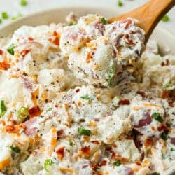You guys have been asking, so I made the change. This Crack Potato Salad now has mayonnaise in the dressing! It seriously takes the flavors up a notch! I love the combination with the sour cream. I can’t wait for you to try this new version!