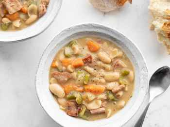 Our chunky ham and bean soup turns leftover ham into a hearty dinner in under an hour, and I love that one puréed can of beans thickens the broth without needing any cream.