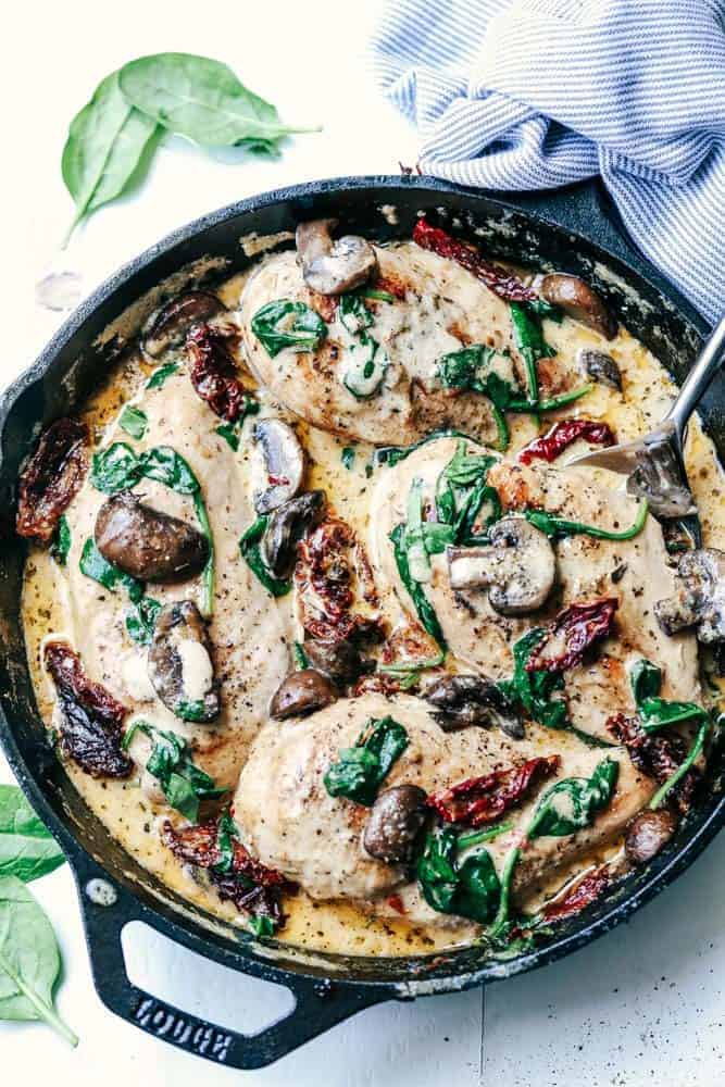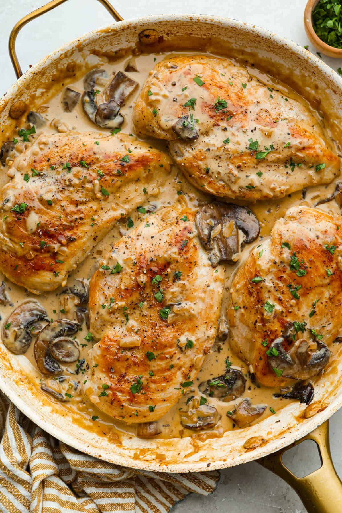 • Add the chicken back to the skillet, spoon the sauce over the chicken, and heat through for a few minutes. Season with additional salt and pepper if needed, garnish with fresh parsley, and serve.