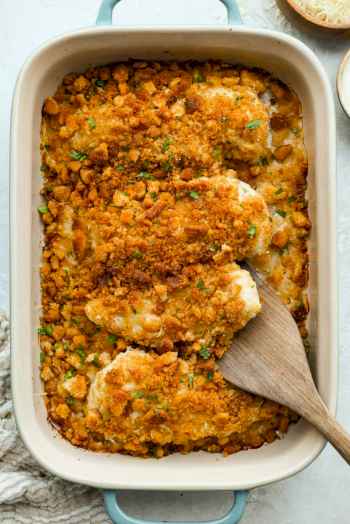 Think of this like your favorite Caesar salad, just warm, hearty, and way more filling! The creamy dressing keeps the chicken juicy and packed with flavor, while the parmesan and buttery crouton topping bakes up golden and crispy. The hardest part? Waiting for it to come out of the oven!