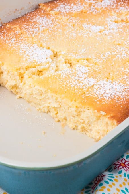 You are going to want to use a deep 9 X 13-inch pan. If you don’t have one, my suggestion would be to use both a 9 X 13 and an 8 X 8. When pouring the batter into the 9 X 13, a good rule of thumb as to weather or not the pan is large enough is to make sure that there is at least an inch between the batter and the top of the dish.