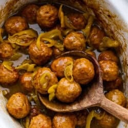 Crockpot Mississippi meatballs make the best little appetizer or side dish. The flavorful pepperoncini mixed with the au jus and ranch seasoning packets with delectable butter makes the most amazing sauce. It's perfectly soaked up by the tender meatballs.